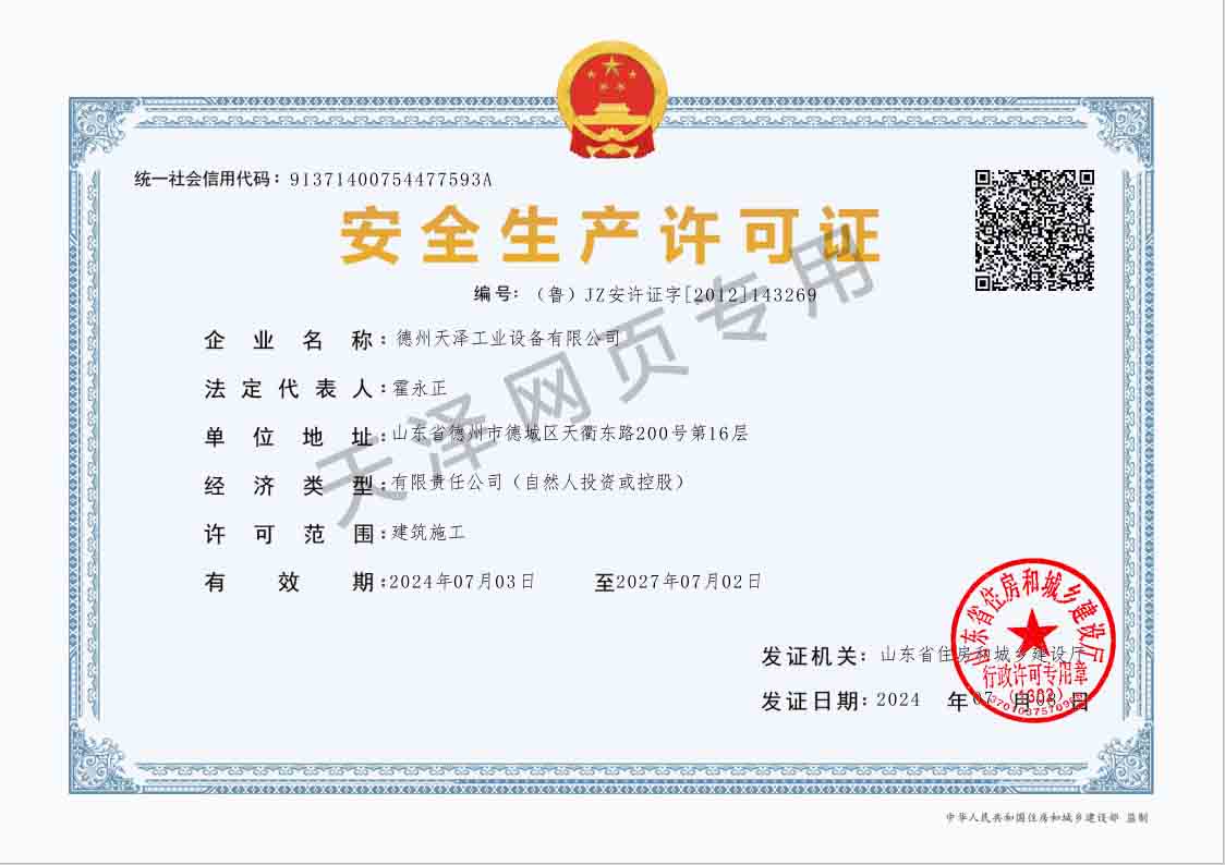德州天澤工業設備有限公司成立于2003年(前身為德州天元集團天明工業設備安裝公司),經過20多年的發展,現成長為擁有職工600余人,各類專業技術人員近300余人,年生產能力兩億元以上,以建筑機電安裝工程、消防設施安裝工程施工為主,集建筑工程施工、市政工程施工、建筑智能化工程施工、園林綠化工程施工、工程管理服務、物業管理、電氣機械設備銷售等多元化經營于一體的綜合型企業。2005年,企業按照國際標準建立的質量管理體系,通過了ISO質量管理體系認證、環境管理體系認證、職業健康安全管理體系認證。施工工程遍布山東、河北、四川、江蘇等地,最具代表性的工程有:山東省德州市百腦匯資訊廣場機電安裝工程、德州經濟開發區天元大廈機電安裝工程、陵城區人民醫院機電安裝工程、德州金魯班大廈機電安裝工程、河北故城金辰小區機電安裝工程、北川地震災后援建工程等。多年來,公司始終堅持“以人為本,建精品工程,創行業品牌”的經營理念,先后榮獲省(市)級泰山杯、天府杯、魯安杯等獎項,申報各種功法、多項專利。